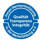 Ich verpflichte mich, nach den ethischen Richtlinien und im Sinne des Berufskodex für die Weiterbildung des Forum Werteorientierung in der Weiterbildung e.V. zu handeln und bin dadurch berechtigt, das Siegel „Qualität – Transparenz – Integrität“ zu führen. Ich bin Mitglied im Deutschen Fachverband für Coaching und berufe ich mich in meiner Arbeit auf dessen Ethik-Präambel. Meine Coachingausbildung ist zertifiziert durch den Qualitätsring Coaching und Beratung E.V. Regelmäßige Weiterbildungen an renommierten Instituten der Coachingbranche sind für mich obligatorisch, um meinen Klient:innen stets fundierte und aktuelle Beratung bieten zu können.